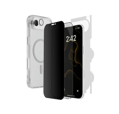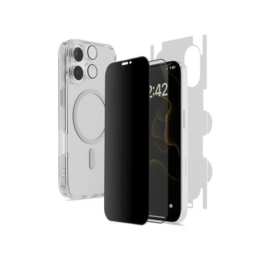 Porodo 360° Shield Series for iPhone 17 Air with 5-in-1 Privacy, Protection & Crystal Clear, HD Clear Screen Protector, Privacy Screen Protector, Camera Lens Protector, MagSafe Clear Case, Back Film Protector, Drop-Tested Military Grade Protection - Clear