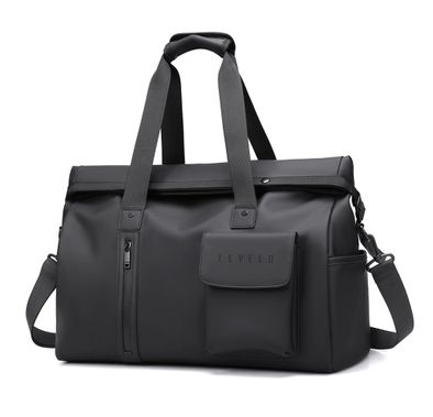 Levelo Allinstyle Saffiano Leather Travel Duffle Bag, 40L Spacious Interior, Comfortable Portability, Water Resistant, Exquisite Safeguarding - Black