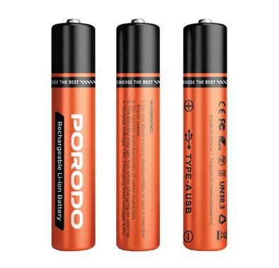 Free ShippingPorodo Rechargeable Battery 4-Pack with AAA Lithium‐Polymer Cell Type, 850mAh Capacity, USB Type‐C Charging Port, 2 Hours Charging Time, -20°C to +60°C Operating Temperature - Orange / WhiteStock59.00