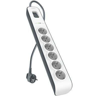Free ShippingBelkin Surge Master Protector 6 Outputs with 2m Power Cable EU, Surge Strip Compatible for DVD Player, Gaming Console, Speakers & Other Medium-sized Appliances - WhiteStockNight Delivery129.00
