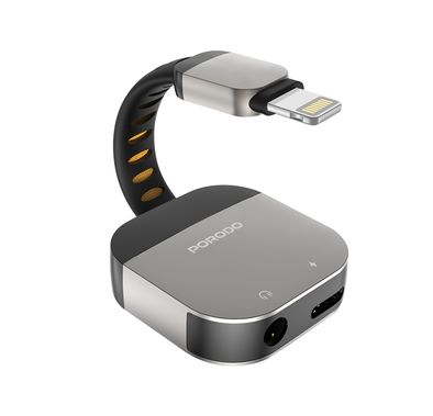 Free ShippingPorodo 2-in-1 Lightning to 3.5mm Aux Adapter with Wide Compatibility, Noise Reduction Audio Quality, PD 10W Charging Power, Hi-Fi Stereo Sound, 16bit/48kHz, Aluminum Connector - GrayStock59.00