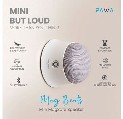 PAWA Magbeats Mini MagSafe Speaker in gun metal black, deep blue & white color with 10M bluetooth distance, 3W speaker, 300mAh built in battery59.00
