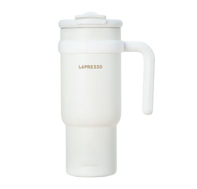 LePresso Coffee Mug with Stainless Straw, 900mL Capacity, Durable Stainless Steel Material, Dual Drink Mode, Lightweight - White103.02