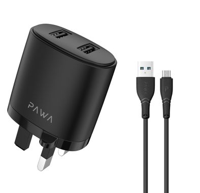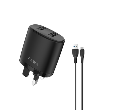 Pawa Stout GaN Travel Charger with Type-C to Lightning Cable, 25W Total Output Power, Low Temperature & Fire Protection, 1.2m Cable Length, Fast Charging - Black79.00