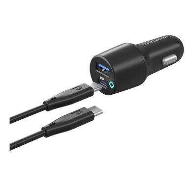 Powerology Dual Port Car Charger with 35W Power Delivery, Fast-Charging, USB-C & USB-A Outputs, Built-in Safeguards, Patented Design, 53W Total Power - Black70.38