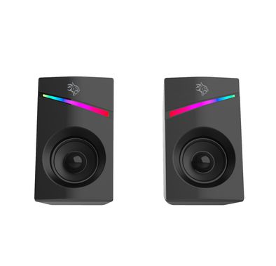 Porodo Gaming Stereo Speakers with Volume Knob Control, Broad Compatibility, Plug & Play, 6W Audio Output, 3.5mm Audio Interface, 7 Colors Rainbow Lighting - WhiteStock60.18