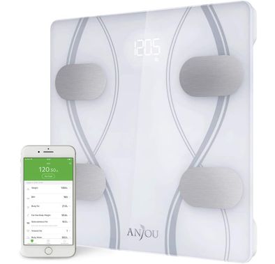 Anjou Body Weight Scale, Bluetooth Smart Wireless High Precision Digital Body Weight Scale / Composition Analyzer / Health Monitor with iOS and Android App for Body Weight / Fat / Water / BMI / BMR / Muscle Mass - WhiteStock223.38