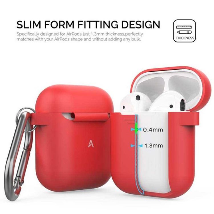 AhaStyle Keychain Silicone Case with Anti-Lost Ring for AirPods 1/2 Generation, Drop Resistant, Dustproof and Absorbing Protective Cover with Hang Case Red