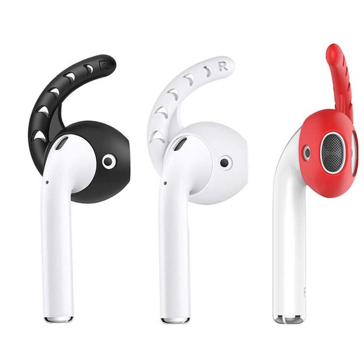 AhaStyle Premium Silicone Earhooks Coverfor Airpods 1/2 ( 3 pairs ) Anti-fall Suitable for Jogging, Cycling, Gym & Fitness Activities -Black/White/Red