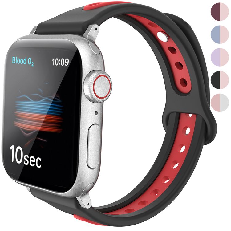 AhaStyle WA13-40MM-BK Premium Silicone Apple Watch Band Duotone Design 38 / 40mm Sport Strap Compatible with Apple Watch Series SE/6/5/4/3 - Black