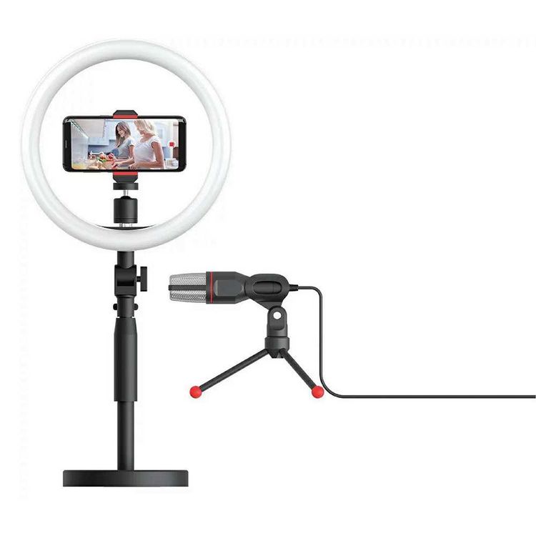 Alfoto Video Kit for Live Streaming & Video Making - Ring Light with Stand & Podcast Microphone for Smartphone - YouTube Vlogger Video Kit - Vlogging Accessories