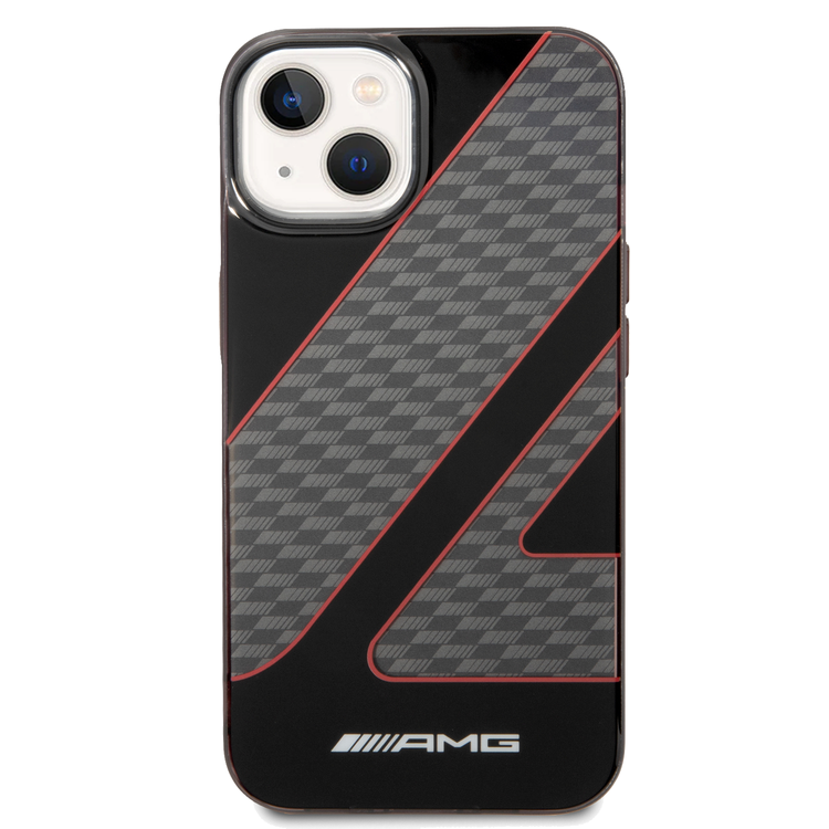AMG Transparent Double Layer Case with Checkered Flag Pattern Crystal Case iPhone 14 Plus Compatibility - Red