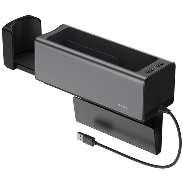 Baseus Deluxe Metal Armrest Console Organizer with 2 USB Ports, Retractable Hidden Cup Holder, Aluminum Alloy Material, Space Saving Design - Black