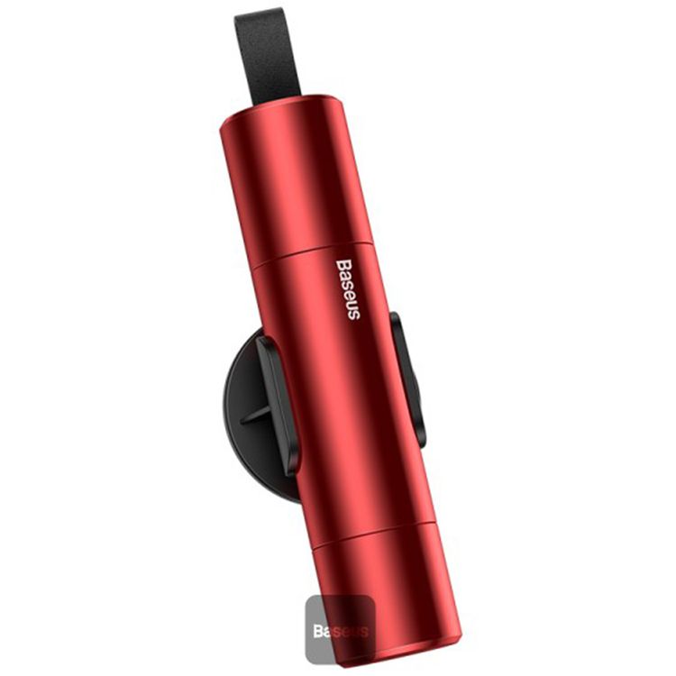 Baseus Sharp Tool Safety Hammer with Tungsten Steel Head, 55 HRC Rating, Sharp Blade to Cut Seatbelts, Mounted Spring to Strengthen the Impact Force - Red