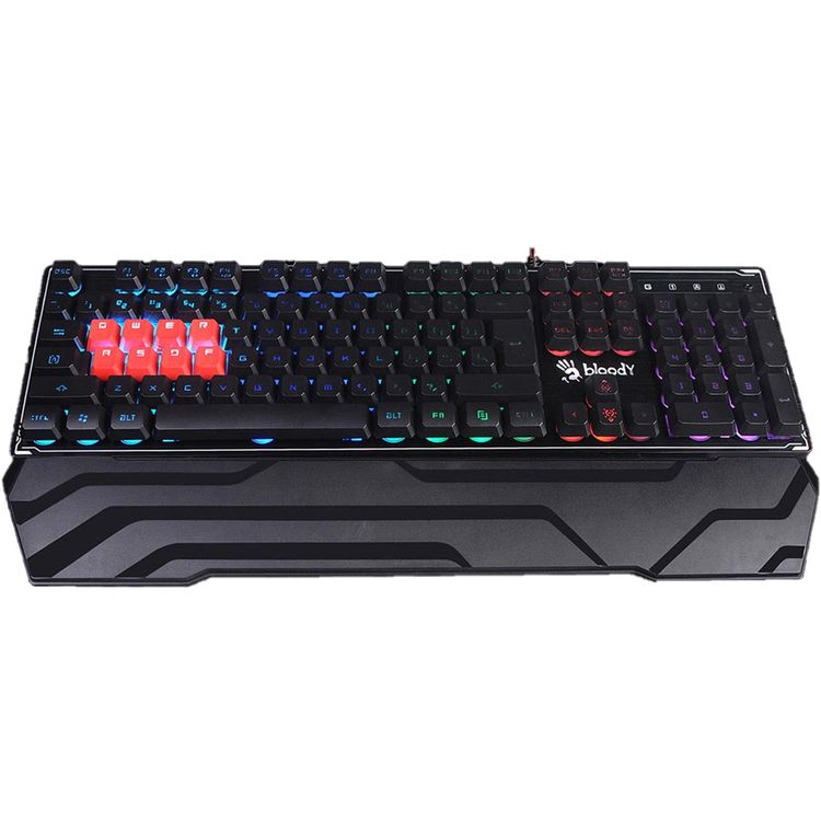 Bloody Mechanical Gaming Keyboard with RGB Backlighting, 0.2ms Response Time, Anti-Ghosting Keys, Wrist Support, Programmable Macro Keys, USB-A Connectivity - Black