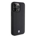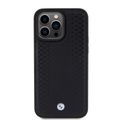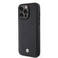 BMW Leather Case with Sign Diamond Pattern for iPhone 15 Pro - Black