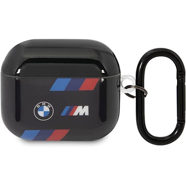 BMW M Collection Airpods 3 Case with Tricolor Stripes, Scratch Resistant, Shock and Impact Protections, Easy to Install, Snap-on Design, Fingerprint Resistant Surface - Black