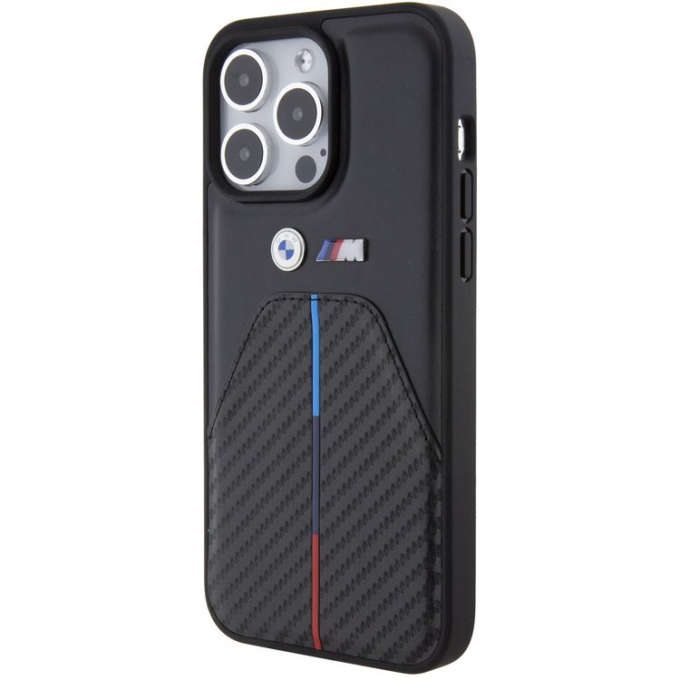 BMW M PU Leather & Carbon Case with Metal Logo for iPhone 15 Pro