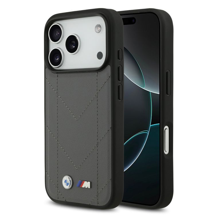 BMW MagSafe PU Quilted Leather Case with Metal Logos for iPhone 17 Pro, Slim Profile, Easy Snap-On Design, Sustainable Packaging, Drop Protection - Gray