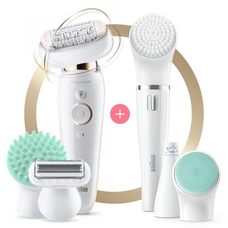 The world's first epilator with a fully flexible head, the Braun Silk-épil 9 Flex 9300 Beauty Set is designed to remove hair with ease and precision. With 40 tweezers in the Micro-Grip tweezer technology, this unique instrument ensures flawless skin for weeks rather than just days. Its handle is flexible and ergonomic. This makes it the perfect tool for the shower. It improves comfort and usability in challenging areas. This design makes epilation in water less painful. It's possible due to the 100% waterproof design and SensoSmartTM technology. This technology monitors pressure to reduce pain. The FaceSpa is a system that combines a face epilator, cleansing brush, and massage pad. It enhances your skincare by cleaning your skin six times better than manual scrubbing. For delicate areas, other accessories provide options. These include a trimmer cap and shaver head. They guarantee a thorough grooming experience. Every set includes a smart plug, an AA battery, and a bag, making it an essential tool for preserving perfect skin while relaxing in your own home.