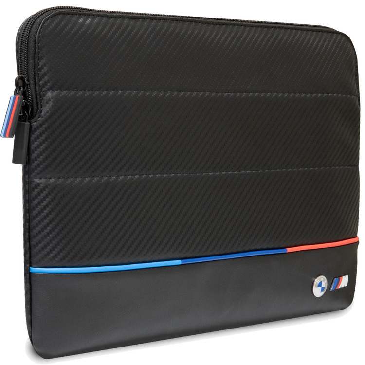 CG MOBILE BMW Carbon PU Sleeve With Contrasted Tricolor Line Protective Bag 16" Compatible With MacBook Intel® UHD Graphics/Windows/HP/Value Top Load Bag/Work, School, etc. - Black