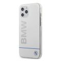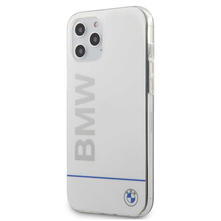 CG Mobile BMW PC/TPU Shiny Hard Case Blue Horizontal Line and Printed Logo Compatible for iPhone 12 Pro Max (6.7") Shock & Scratch Resistant, Easy Access to All Ports, Drop Protection Back Cover Suitable with Wireless Chargers Officially Licensed - White