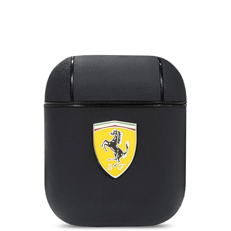 CG Mobile Ferrari FESA2LEBK No Track Leather case With Metal Logo for Airpods 1/2 Officially Licensed , High-Quality material , Dust Proof , Compatible with Airpods 1/2 - Black