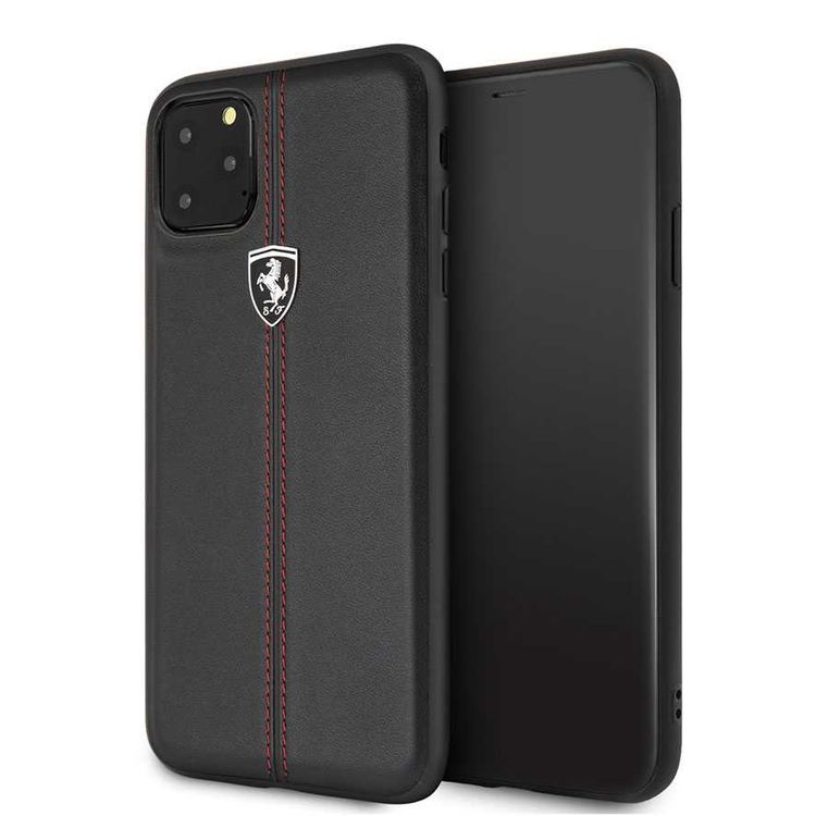CG MOBILE Ferrari Off Ferrari Vertical Stripe Leather Hard Phone Case Compatible for iPhone 11 Pro Max (6.5") Scratch Resistant Mobile Case Officially Licensed - Black