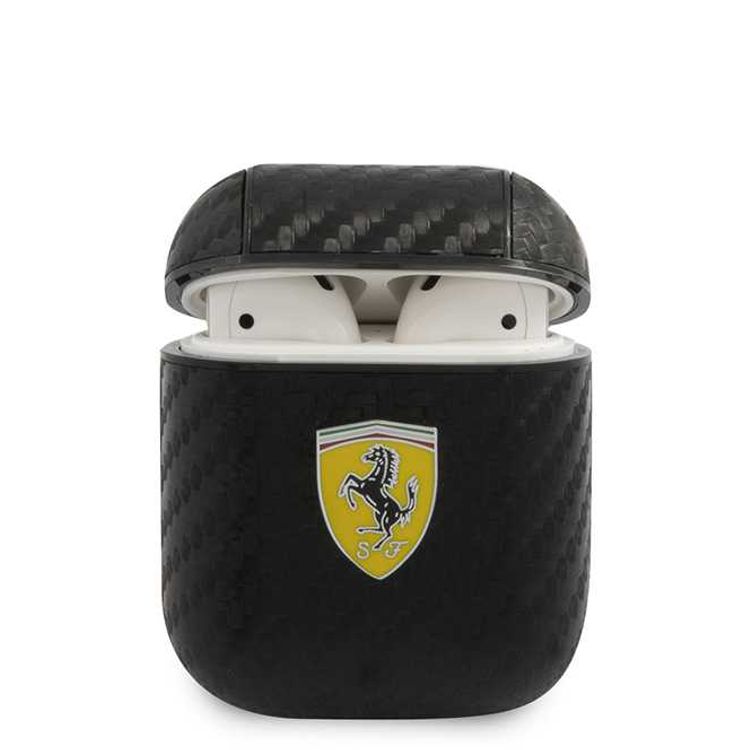 CG Mobile Ferrari PC PU Carbon Yellow Shield Metal Logo Case Compatible for Airpods 1/2 - Black