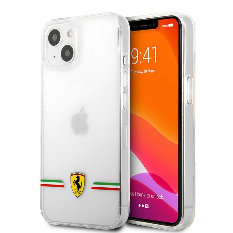 CG MOBILE Ferrari Transparent Case Italia Wings Print Logo Compatible for iPhone 13 (6.1") Scratches Resistant, Easy Access to All Ports