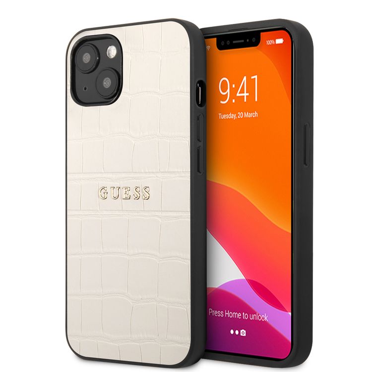CG MOBILE Guess PU Leather Croco Case Hot Stamped Lines & Metal Logo Compatible for iPhone 13 (6.1") Anti-Scratch, Easy Access to All Ports, Shock Absorption