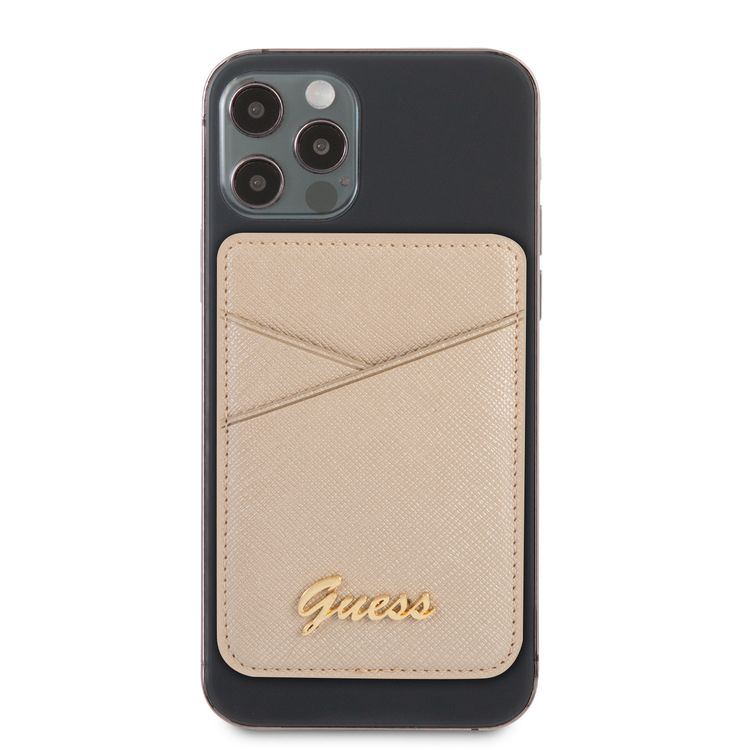 CG MOBILE Guess Saffiano Script Wallet Cardslot with Magsafe for iPhone 12 Pro Max, 12/12 Pro, 12 Mini, Magnetic Wallet Card Holder, Phone Back Slot Wallet Card Case Officially Licensed Gold