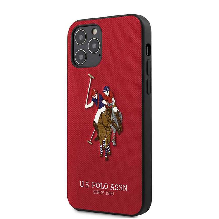 CG Mobile U.S. Polo Assn. PU Hard Case Polo Embroidery for iPhone 12 Pro Max (6.7") Shock & Drop Protection Suitable with Wireless Chargers Officially Licensed - Red