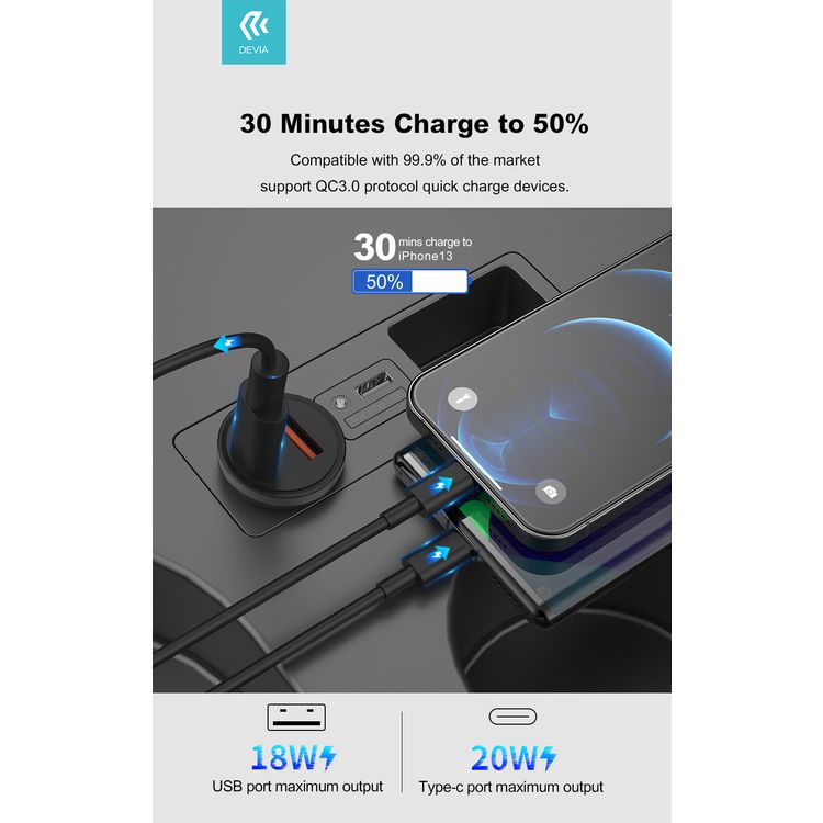 Devia Smart Series Mini PD + QC3.0 Car Charger 20W - Black