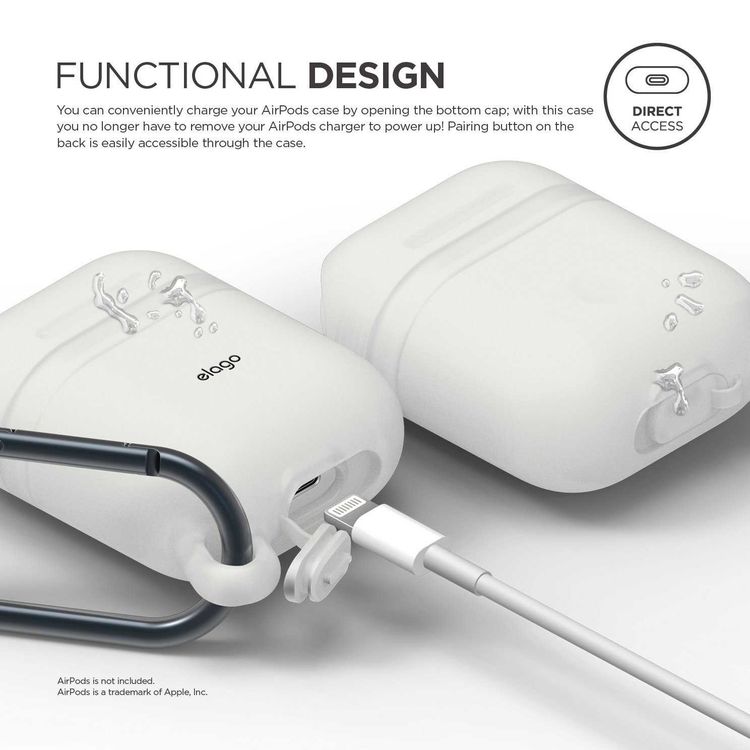 Elago Airpods Waterproof Hang Case, High Quality Silicone, Waterproof Case up to 1meter(3.3ft), Functional Design, Dustproof, Aluminum Carabiner, Impact Protection- Nightglow Blue