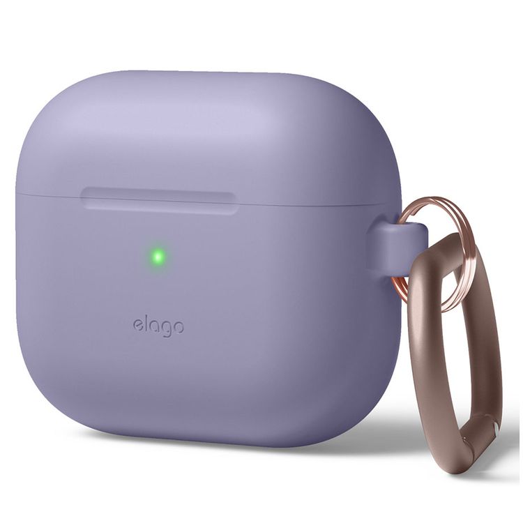 ELAGO Hang Case with Anti-Lost Ring for AirPods 3, Drop Resistant, Dustproof & Absorbing Protective Cover with Hang Case Suitable with Wireless Charger Lavender Gray