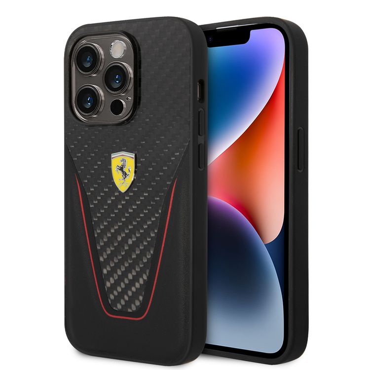 Ferrari Carbon Fiber and Leather Case Aperta iPhone 14 Pro Max - Black