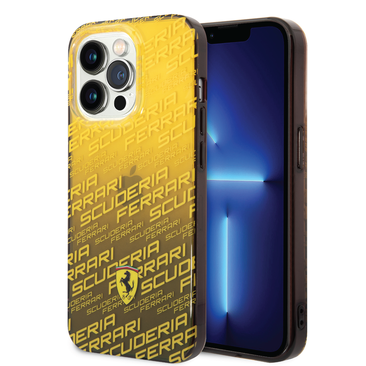 Ferrari Gradient PC/TPU Case with Allover Scuderia & Dyed Bumper iPhone 14 Pro Compatibility - Yellow