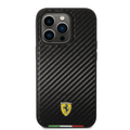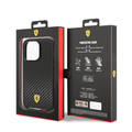 Ferrari HC PU Carbon Effect Case with Italian Flag Line iPhone 14 Pro Max Compatibility - Black