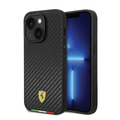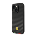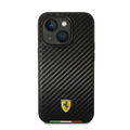 Ferrari HC PU Carbon Effect Case with Italian Flag Line iPhone 14 Plus Compatibility - Black