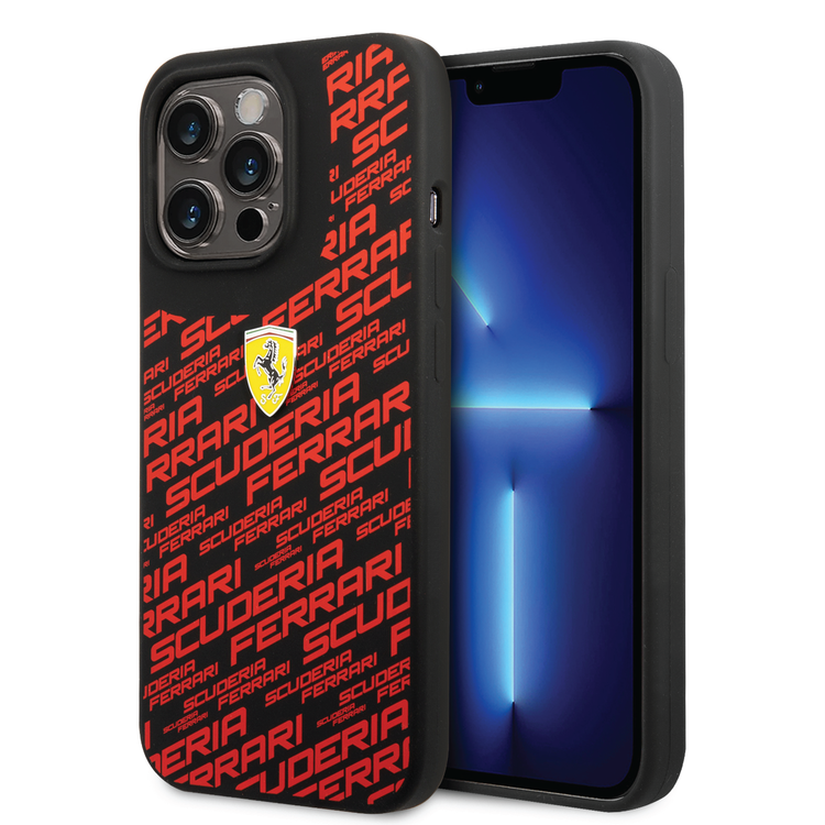 Ferrari Liquid Silicone Case All Over Printed Scuderia iPhone 14 Pro Max Compatibility - Black