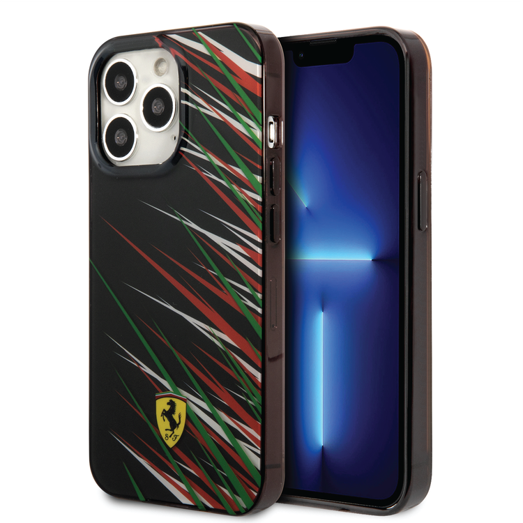 Ferrari PC/TPU Case with Double Layer Grass Print iPhone 14 Pro Max Compatibility - Black