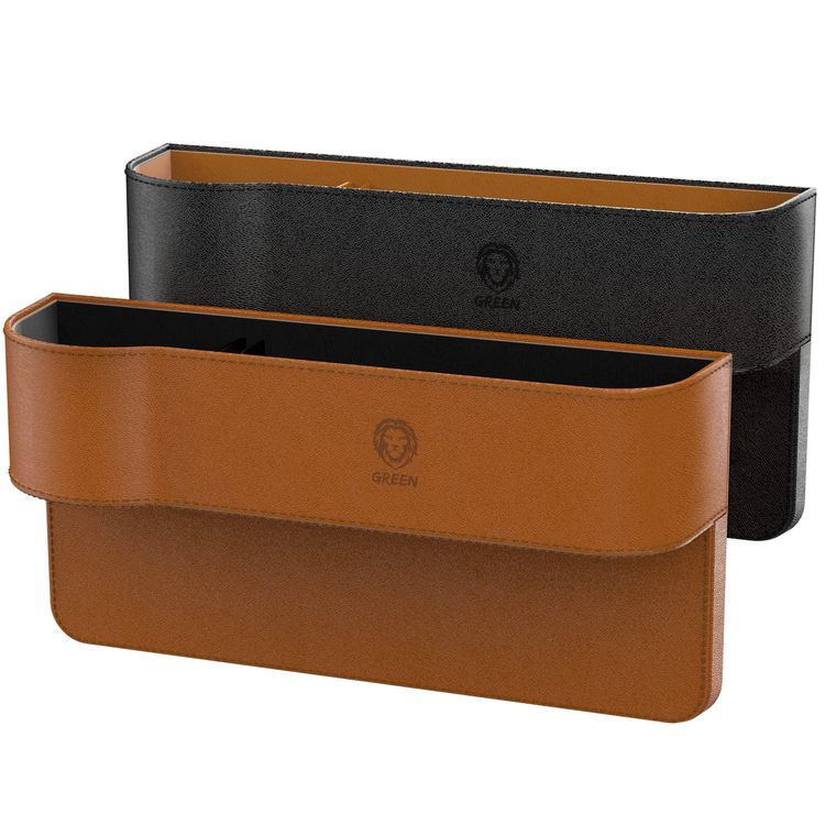 Green Leather Universal Car Seats Organizer, Insert Between Seat & Console, Keep Car More Clean and Organized, Brown