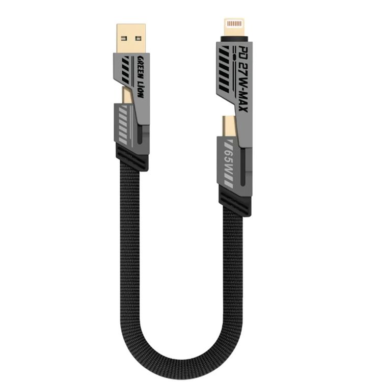Green Lion 2 in 2 Braided Cable, C to C+L and A to C+L, 10000 Bends Life Span, Secure & Safe, Charge & Sync, Wide Compatible - Gray