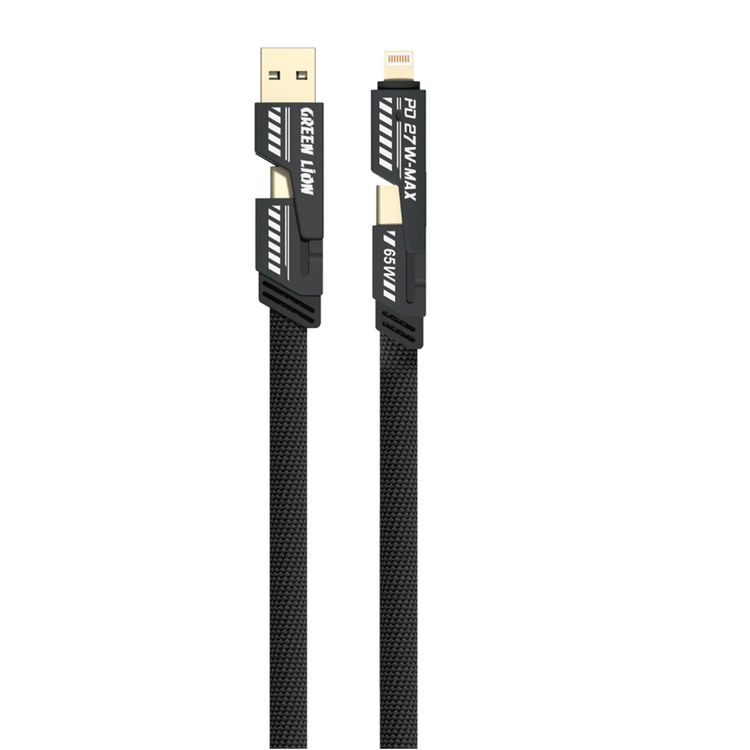 Green Lion 2 in 2 Braided Cable, C to C+L and A to C+L, 1.2m Cable Length, 480Mbps Transfer Speed, Wide Compatible, Charge & Sync, 10000 Bends Life Span - Black