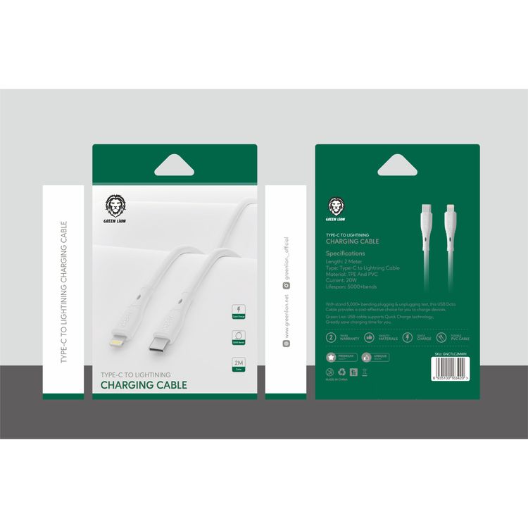 Green Lion 20W Type-C To Lightning Charging Cable (1.2m) - White - 12 cm