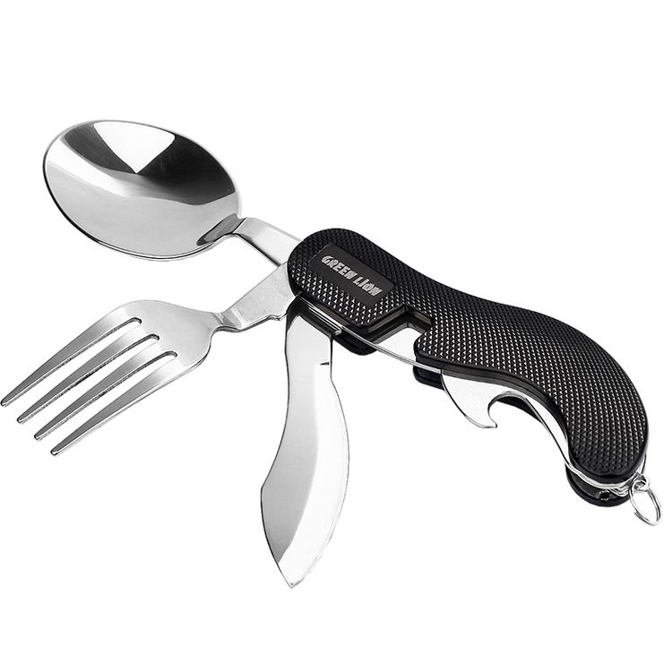 Green Lion 4 in 1 Cutlery Set with Innovative Design, Lightweight & Compact, Easy to Use, Spoon, Fork, Knife, Bottle Opener - Black