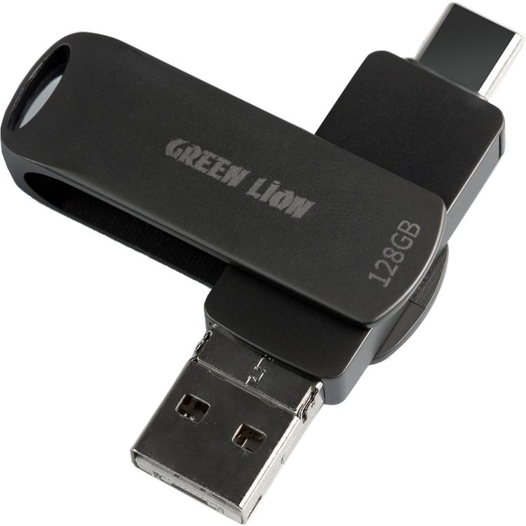 Green Lion 4-in-1 Flash Drive with 128GB Storage, Metal Material, Micro, Lightning, USB-C, USB-A Connectors, Windows, Mac, iPhone, Android Supported - Black