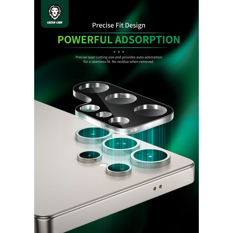 Green Lion Acrylic Lens Protector for Samsung S25 Plus, Anti-Scratch, 9H Diamond Hardness, Full Coverage, High Transparency - Black