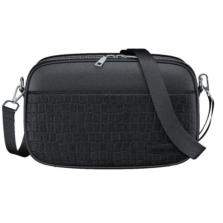 Green Lion Airo Crossbody Bag with 3 Main Pockets & 6 Card Pockets, 3L Capacity, PU Leather Material, Durable Zipper, Water Resistant, Delicate Texture, Travel-Friendly, Wide Opening, Adjustable Strap - Black